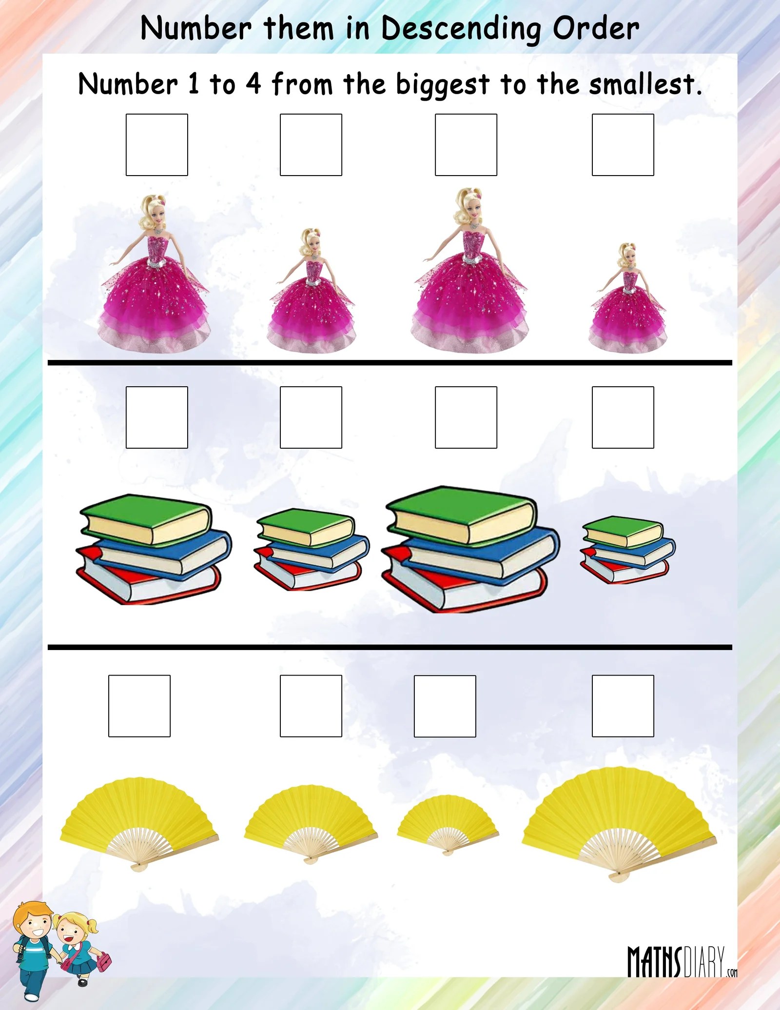 Ordering fractions from greatest to smallest I hope your kids enjoyed doing math, especially counting numbers and making additions with many pictures, which i have mentioned. To help in the development of your children. Find the download option for ascending and descending worksheet booklet pdf at the bottom of this article. Arrange the numbers in descending order.